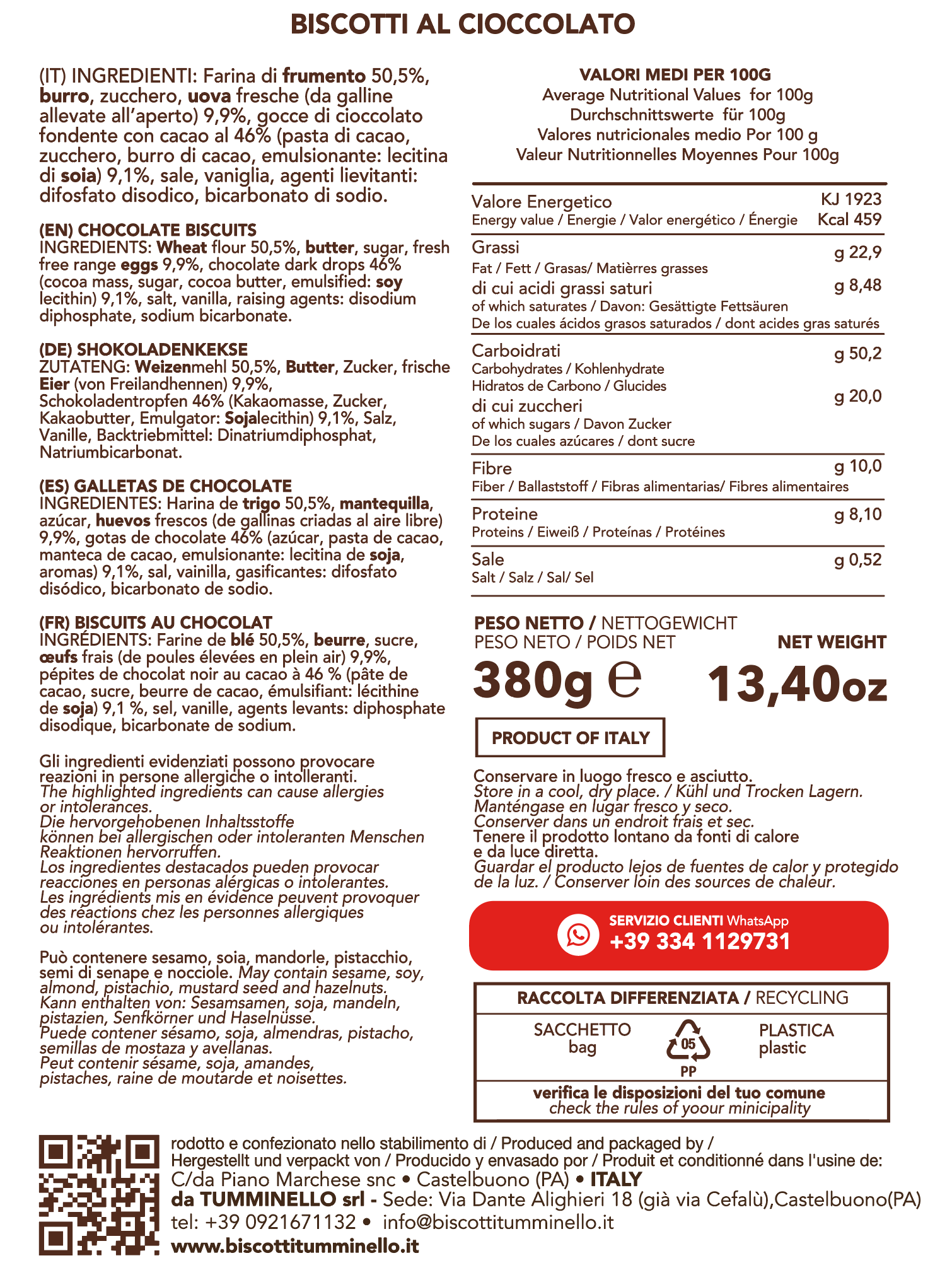 Biscotti Tumminello Cioco - Biscotti con Gocce di Cioccolato 380g -