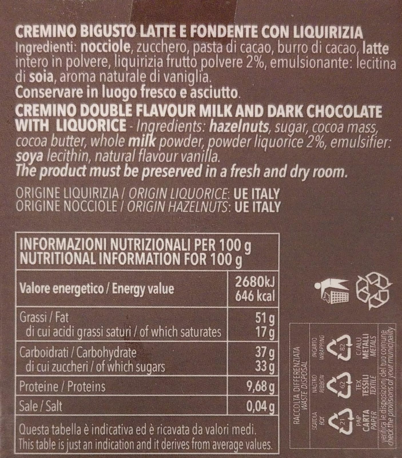 Between tradition and experimentation, Amarelli Calabrian licorice from Calabria is added to our bigusto latte and fondant cremino, giving it its typical enveloping aroma.