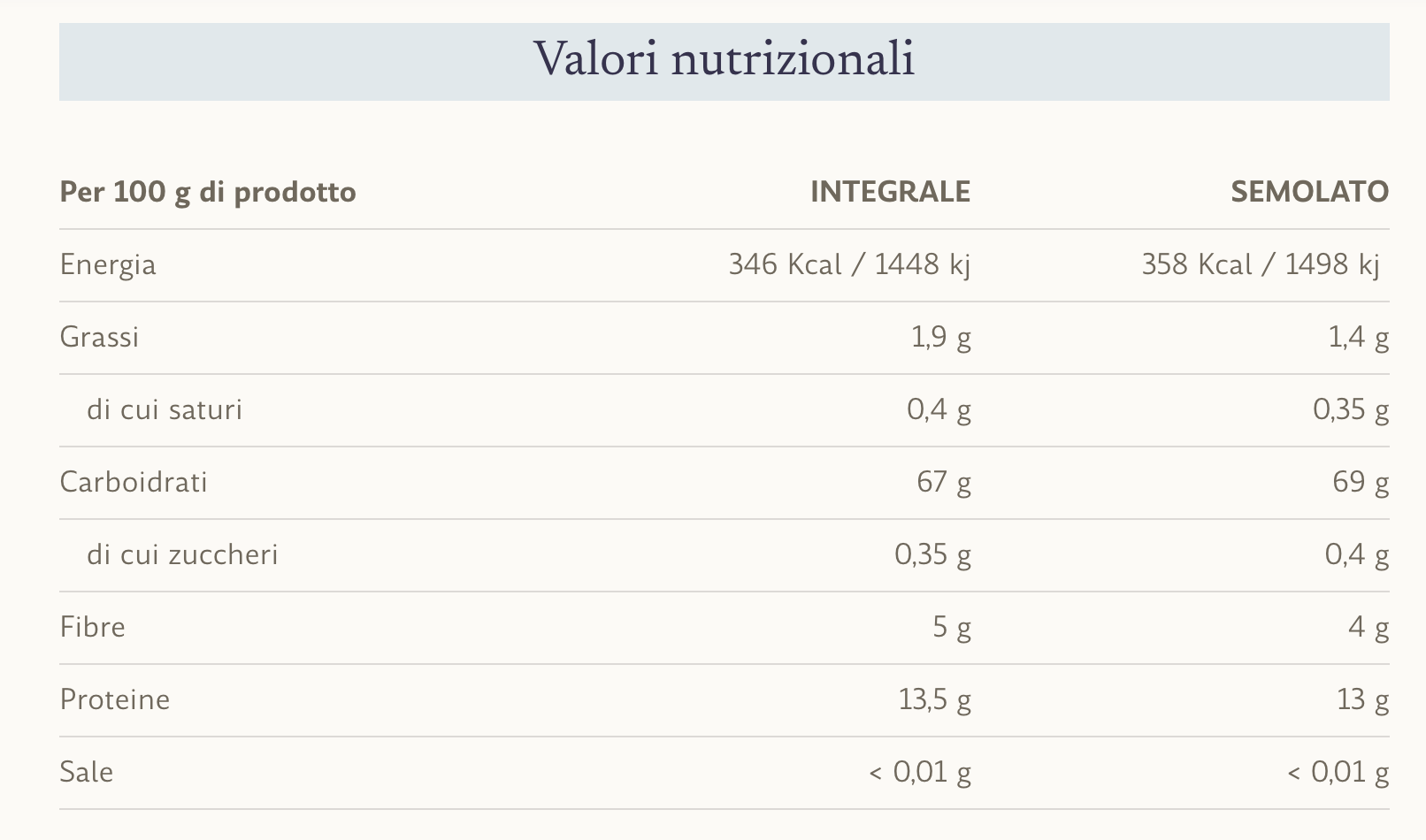 The resulting flour is suitable for any type of preparation, particularly for fresh and dry pasta. It can be mixed with flours from the "Grani Antichi di Sicilia" line to obtain doughs with an even more authentic taste.