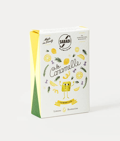Sabadì ISABELLA - Caramelle Artigianali BIO con Miele di Zagara da Ape Nera Sicula, Limone e Rosmarino - 40g