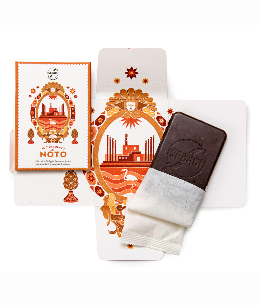 Sabadì Noto - Cioccolato Biologico Lavorato a Freddo con Mandorle e Scorza d'Arancia - 50g