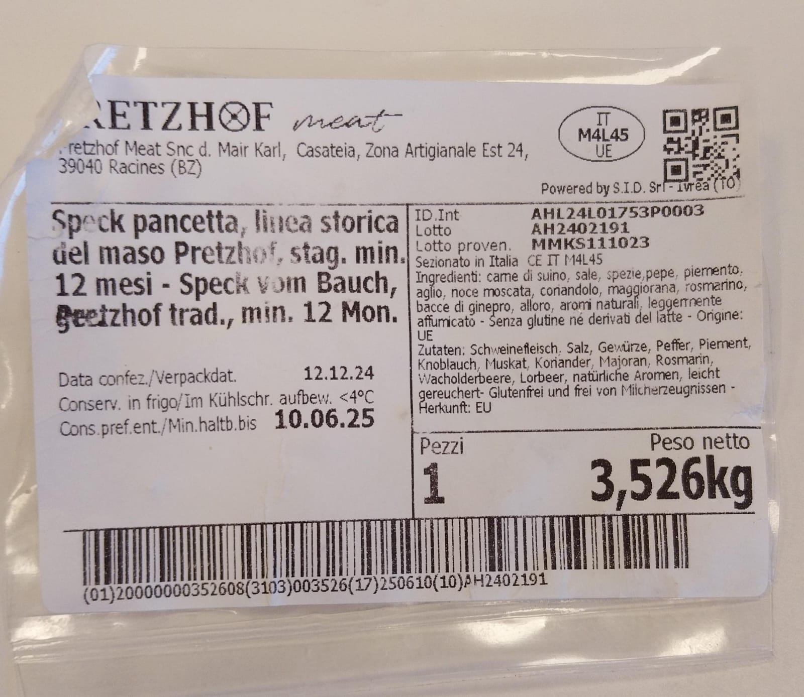 Pretzhof Pancetta Affumicata - 1 Kg