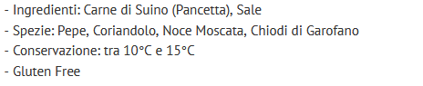 For the production of the sausage the meats used are: ossocollo, shoulder and bacon which are hot worked immediately after the butchering and seasoned with spices. Then the product is hand-tied and dried in the cellars were it stops for 12 hours.