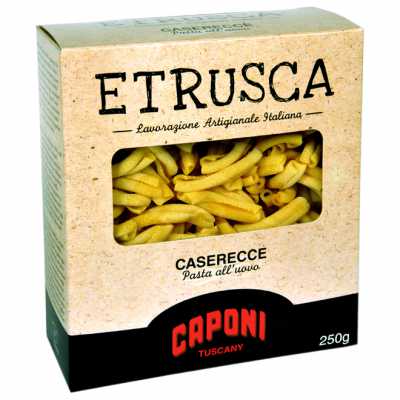 "Etrusca" caserecce egg pasta is ideal with pesto, amatriciana and 4 cheeses sauce.