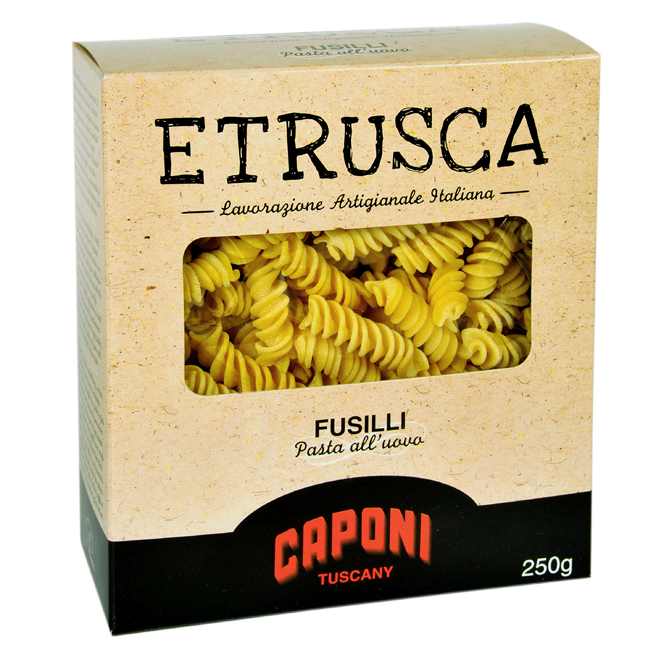 Fusilli: short egg pasta extruded through bronze dies from Pastificio Caponi