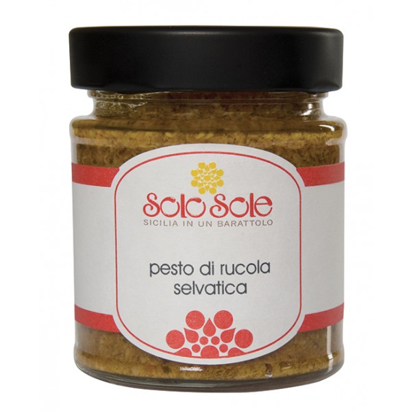 Ingredients: Wild arugula, evo oil, toasted Avola almonds, Parmesan cheese, sun-dried tomatoes, garlic, lemon juice