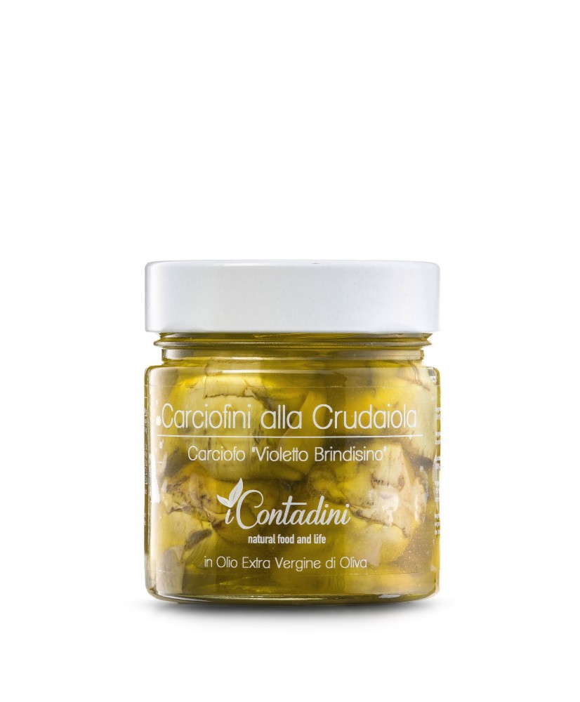 Small, tender and tasty, these artichokes are of the type called "violet". Cultivation takes place from October, while the harvest begins in April. Its processing takes place within eight hours from being fresh. It is very tender, it is just removed and turned manually with a small knife. Immediately after it is placed in extra virgin olive oil. No other condiments or spices are added, to maximize the unique taste of this product. They can be used to enrich an appetizer or cold rice along with other Mediterranean vegetables.