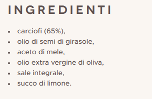 artichokes (65%), extra virgin olive oil (30%), apple vinegar, unrefined salt,