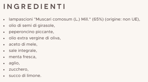 lampascioni "Muscari comosum (L.) Mill." (65%),