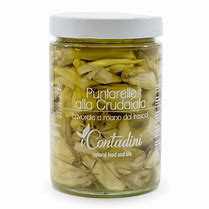 The "Puntarelle" are the heart of the CATALONIAN CHICORY, a typical salad of our territory. We transplant in October and harvest the vegetable between January and February. Our women defoliate the plant and manually cut the "scintuni", ie the shoots, gently put them in tanning to mature for a few days, then they are taken and stored in oil without adding flavorings or spices.