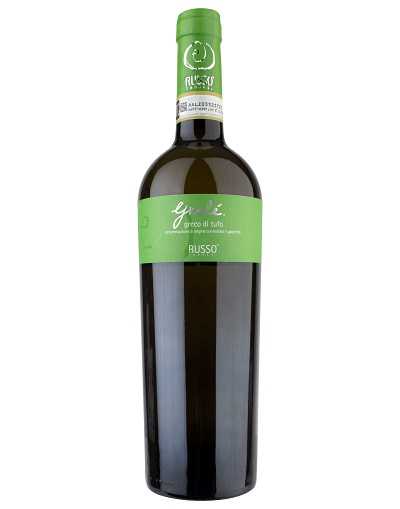 Cantine Russos Grelé Greco di Tufo, ett torrt vitt vin från Kampanien, presenterar sig strågul med gyllene reflexer. Det erbjuder en komplex doft av frukt och blommor, samt en frisk, mineralisk smak.