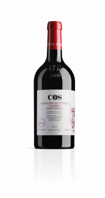 COS Cerasuolo di Vittoria Classico delle Fontane är ett sicilianskt DOCG rött vin. En blandning av Nero d'Avola och Frappato, med en intensiv rubinröd färg. Det erbjuder aromer av röda frukter och kryddor, med en frisk och ihållande smak.